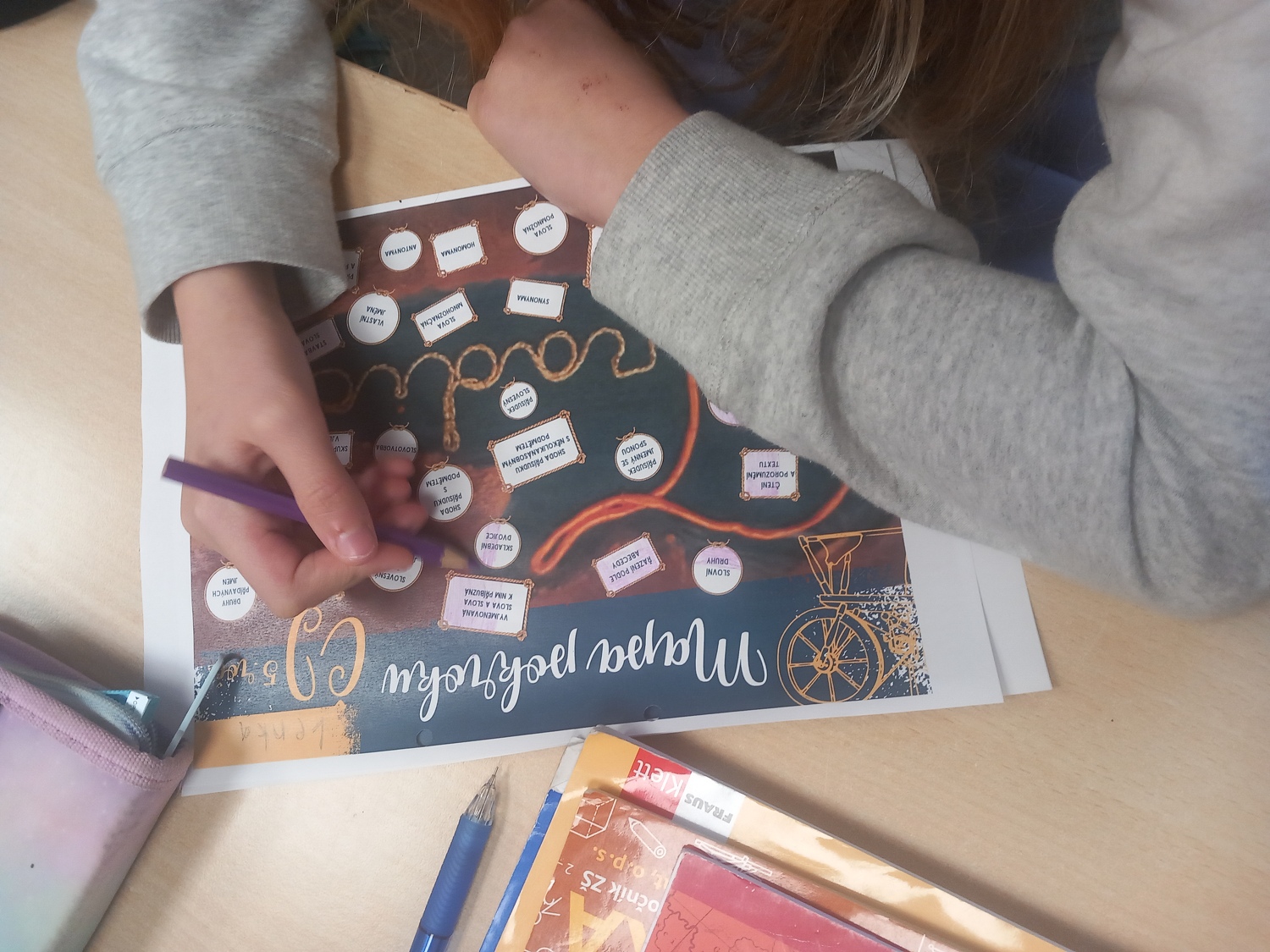 Stejně jako v minulých letech začínáme každý den ranním kruhem. Pro přípravu a přehled informací využíváme týdenní plán, ve kterém se zároveň učíme sebehodnocení. To považujeme za velmi důležité pro další kroky v našem životě – čeká nás první velké rozhodování o nové škole či gymnáziu.