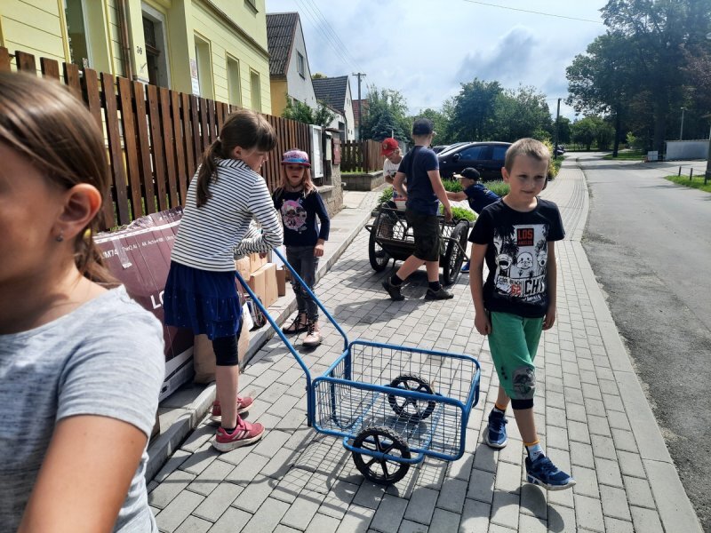 Děti vyrazí s kárkami po vesnici a svážejí papír do sběru, který lidé z vesnice připraví k odvezení před své domy. I letos měla akce úspěch.