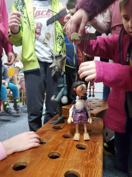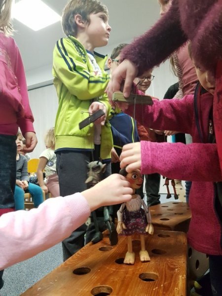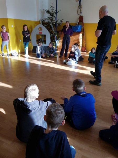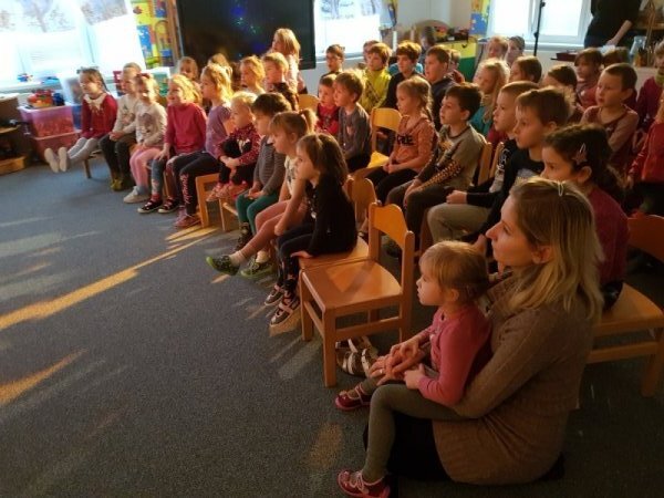 V úterý se mladší děti (1.-3. ročník) přidaly ke školkovým dětem a zhlédly pohádku o Perníkové chaloupce.