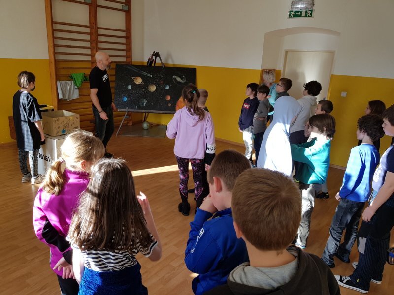 Staší děti (3. - 5. ročník) prokázaly po přestávce svoje dovednosti v únikové hře s tématikou vesmíru a prvky, které znají z Hejného metody matematiky.