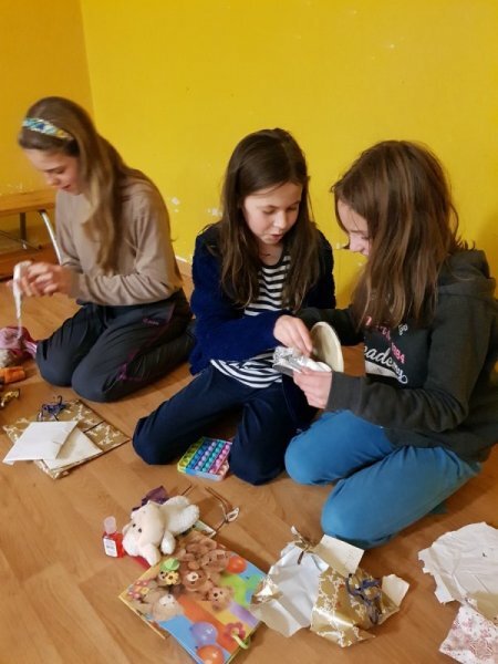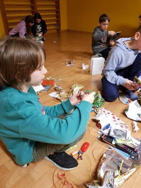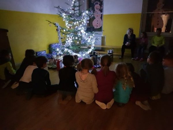 Po čtvrté hodině začal náš školní Štědrý večer. Zahájili jsme ho vycházkou ven, a když jsme se vrátili do tepla, čekala nás slavnostní večeře. A po večeři stromeček a dárky... A po dárcích promítání vánočních pohádek a spíš dlouhá než tichá noc.