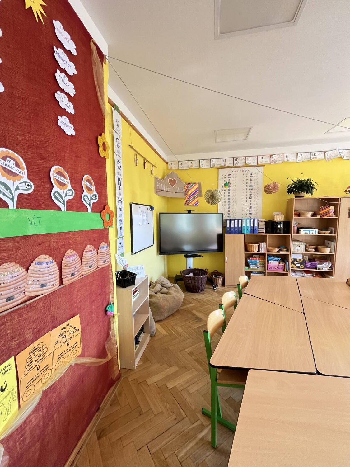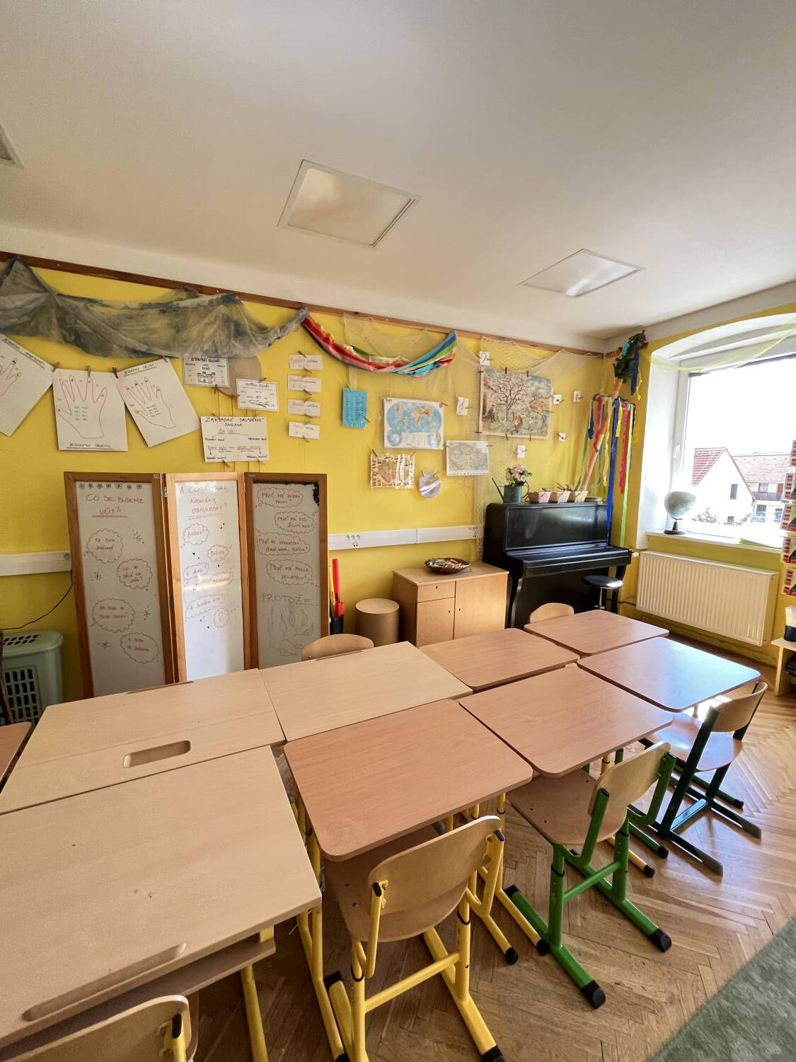 Letošní výzdoba se ve škole nese v duchu jarním, podzimním, zimním i letním..