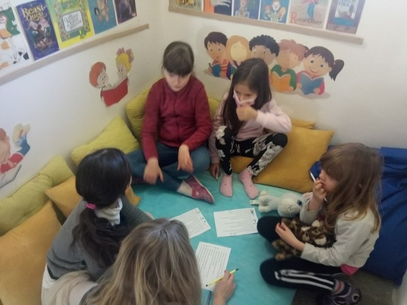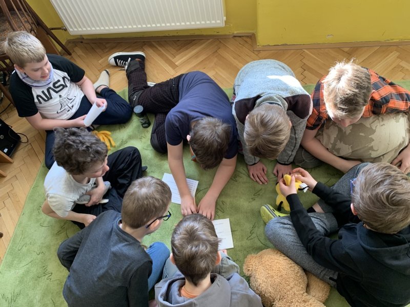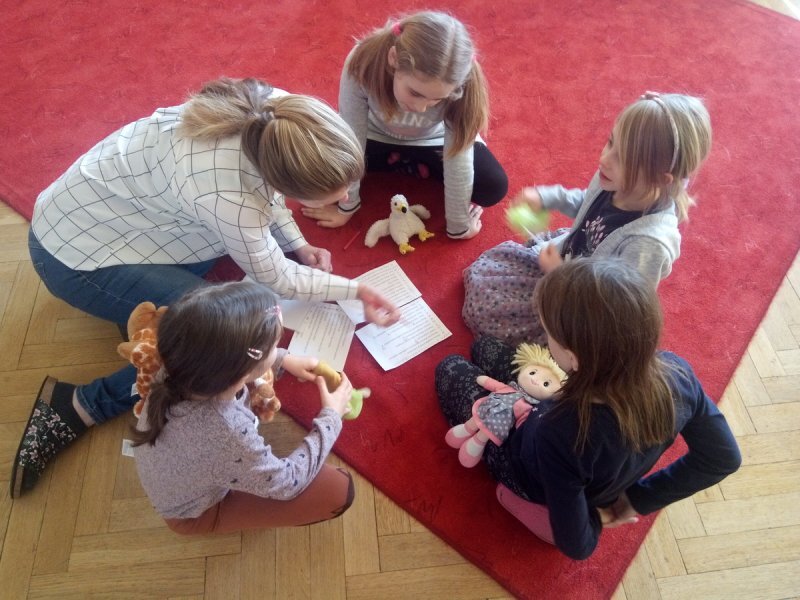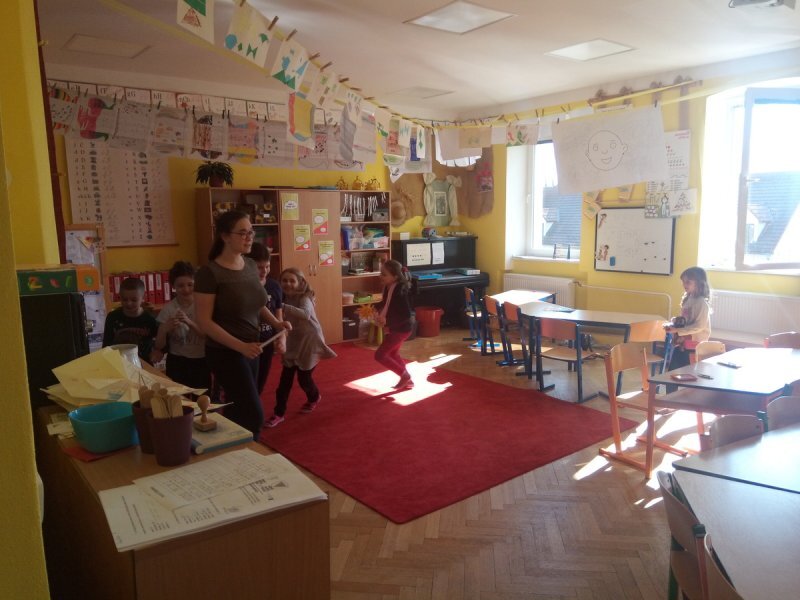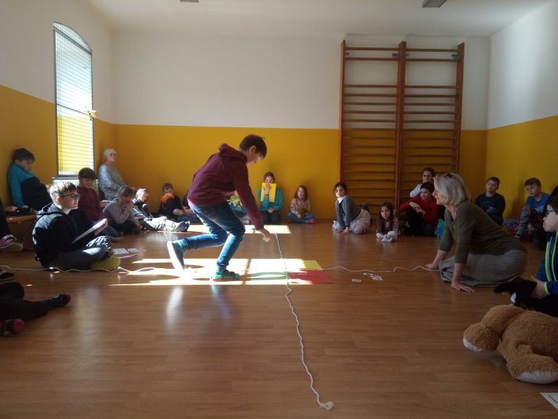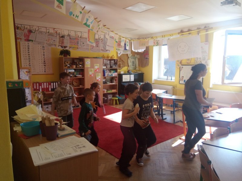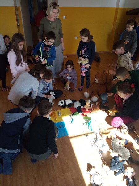 Potom jsme se šli seznámit s jednotlivými zvířátky. Každé zvířátko má nějaké výrazné vlasnosti, naším úkolem bylo je co nejlépe popsat. Na závěr jsme si pak ukázalo, že tyto vlastnosti tvoří prostor lidských charakterů, po které používáme slova jako sangvinik, cholerik, melancholik a flegmatik. Do tohoto prostoru jsme umístili zvířátka ze Stokorcového lesa a na závěr i našeho plyšáčka - který zastupoval nás samotné, jak se vidíme.