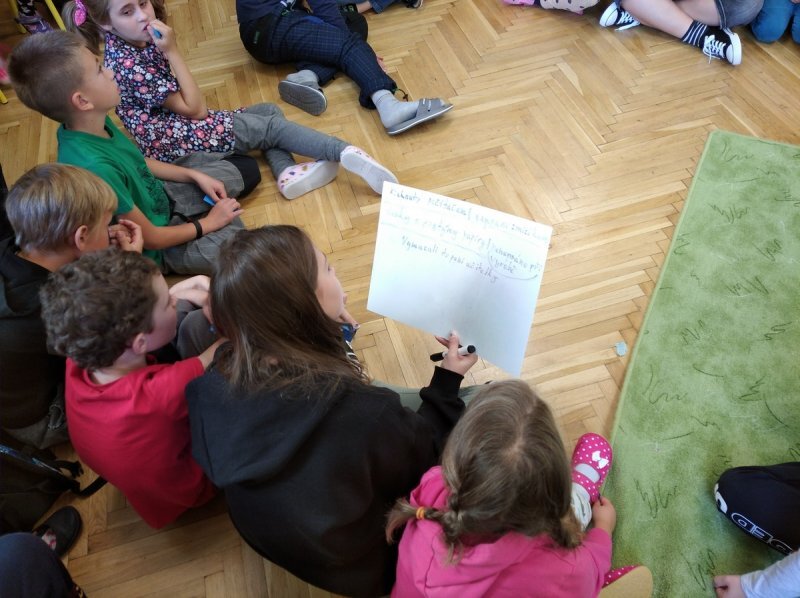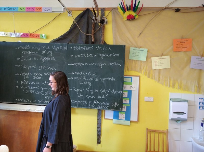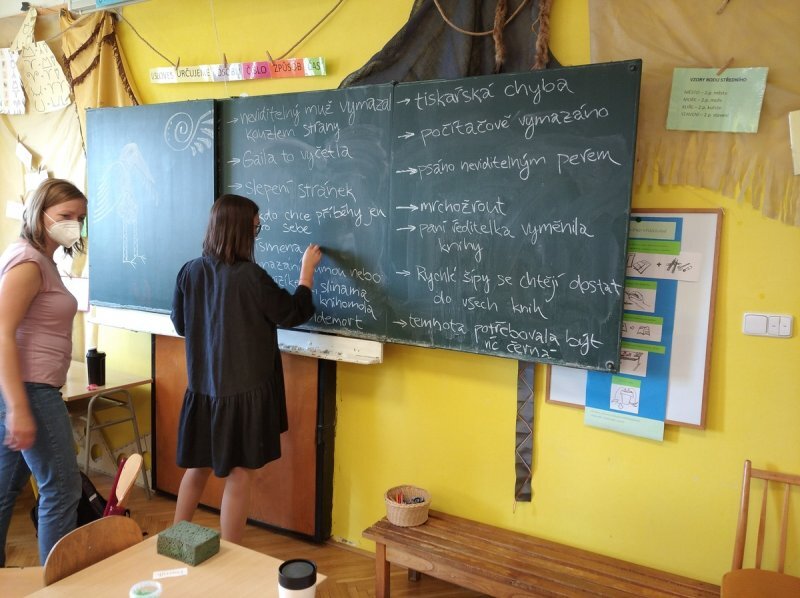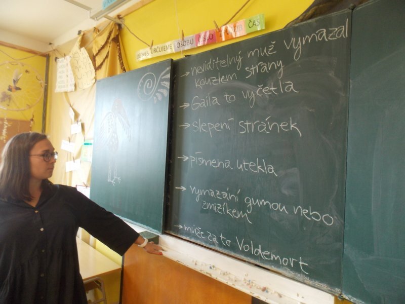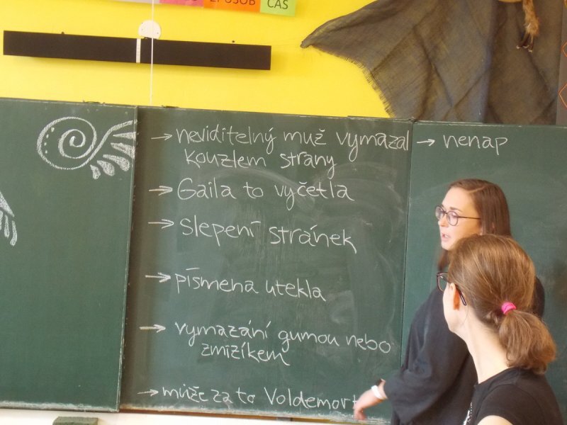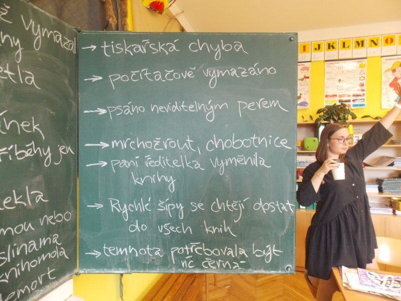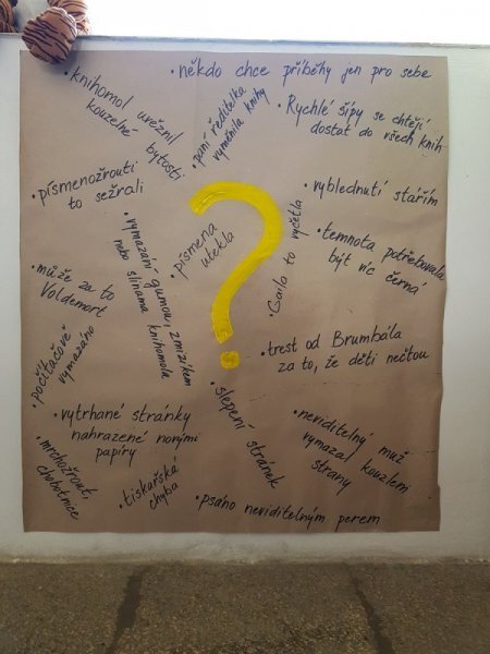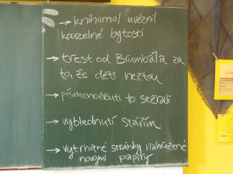A nebyly to ledajaké knihy, ve slovnících například texty zůstaly, poztrácela se pouze písmena z některých knih s příběhy. Začali jsme tedy brainstormingem ve skupinách - co se asi mohlo stát? A hlavně - proč? Budeme to zjišťovat po celý školní rok...